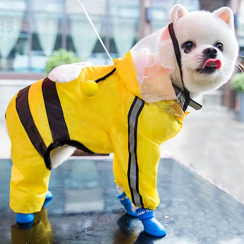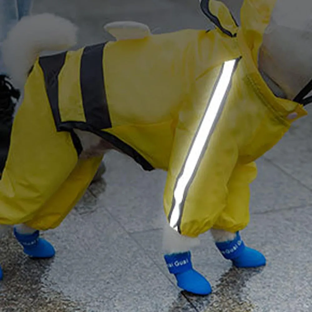 Keep your pup dry and stylish with this Waterproof Reflective Dog Raincoat. Featuring a lightweight, water-resistant material and a protective hood, it shields your pet from rain and wind during walks or outdoor adventures. The reflective design enhances visibility for added safety in low-light conditions.